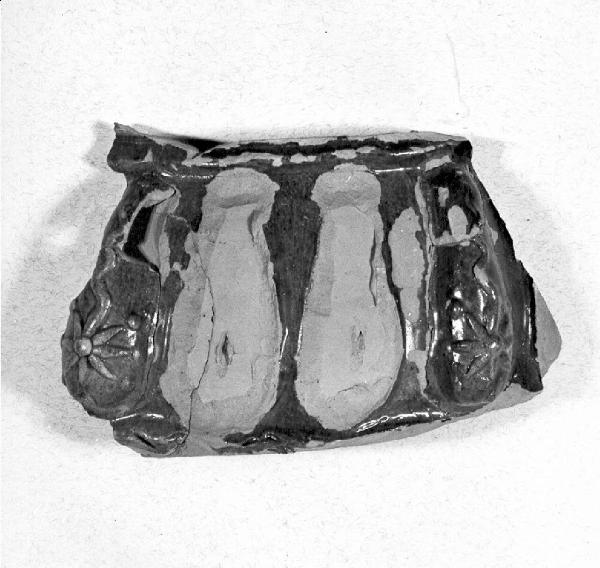 decoro con baccellature in rilievo e motivi applicati