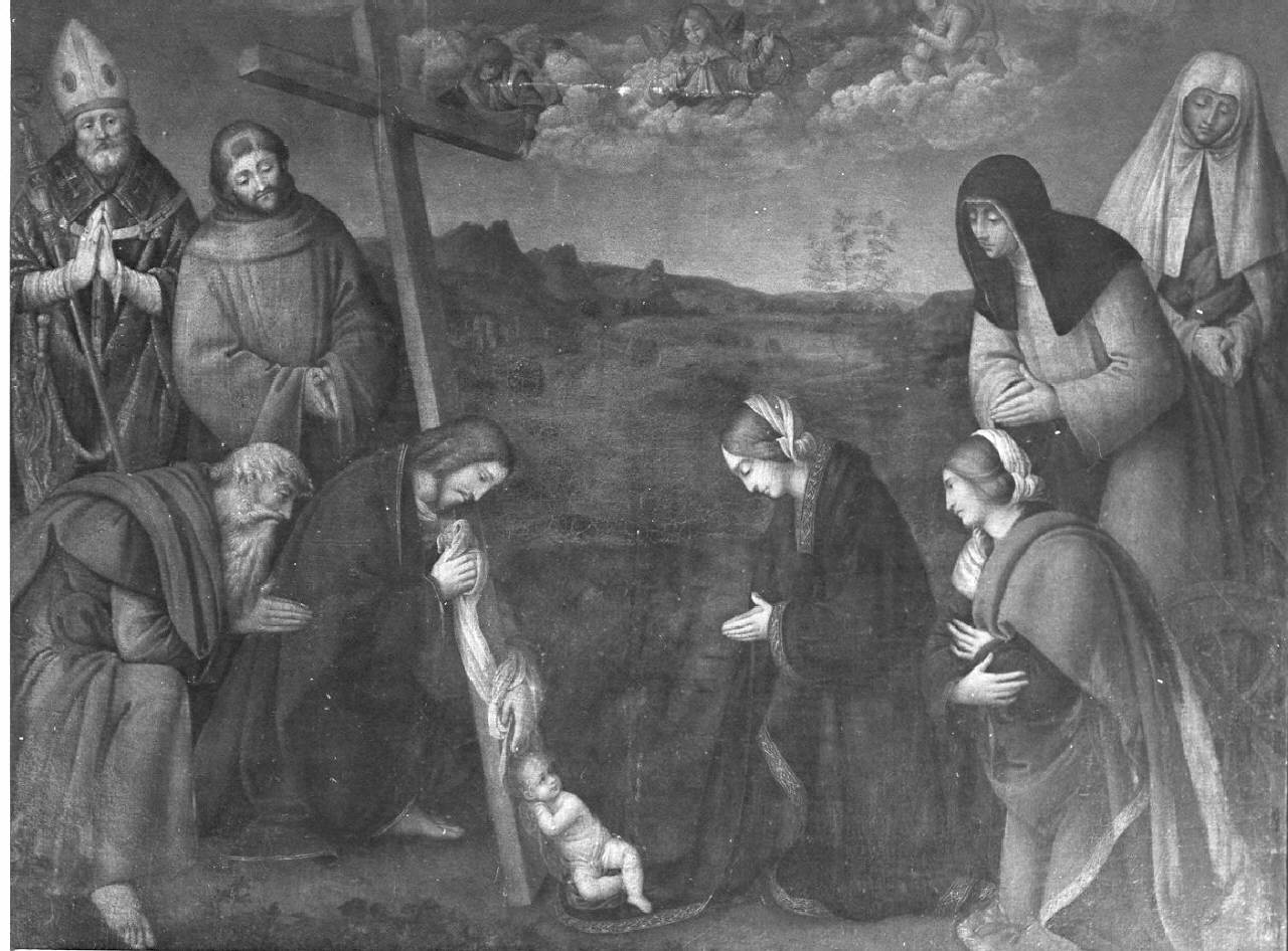 - NOTIZIE STORICO CRITICHE Il riferimento al Giovenone risale al Maiocchi, ribadito dal Bicchi (cfr. U. Bicchi, La Pinacoteca Civica di Pavia, 1965, p. 47) e da Sciolla (Catalogo dei Musei di Lodi, 1977) e Griseri (1964). Insolita e rara l'iconografia, nota solo nel dipinto dell'Istituto Stadel di Francoforte, e che riassume gli schemi di una Natività e di una Deposizione. Accostabile alla prima poduzione di Giovenone per tipologia, gesti e volti, legata ancora alle formule di Defendente Ferrari, mentre la maggiore ricerca di unità gstuale ed emotiva e l'attenzione al paesaggio appartengono alla maturità.