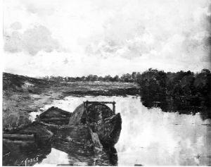 Paesaggio fluviale con barche