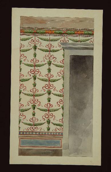 - NOTIZIE STORICO CRITICHE Secondo l'inventario manoscritto cartaceo, il disegno raffigura una decorazione parietale a festoni, in rapporto con una stanza di via S. Spirito, 7.