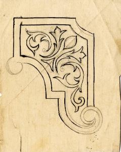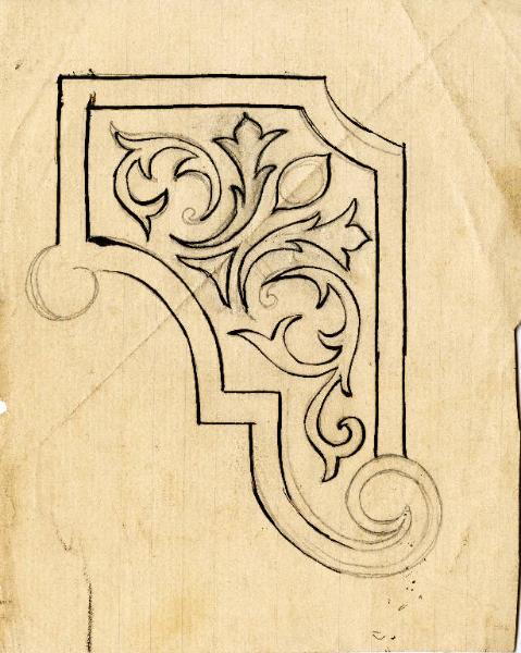il tracciato a matita è parzialmente ripassato a penna; sul verso: ricalco a matita dello stesso motivo del recto