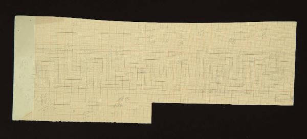 vari calcoli e numeri; al verso, schizzi per altra greca e per struttura architettonica