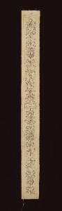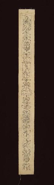 - NOTIZIE STORICO CRITICHE Il disegno rappresenta una delle lesene delle porte del Salone, realizzate nel 1884 in stucco patinato a imitazione del legno, con decori neorinascimentali. Il foglio qui schedato, in particolare, raffigura quella a posta a sinistra della porta a destra del tavolo (che conduce verso la sala da pranzo). Una delle lesene (sia nel disegno che nella realizzazione in stucco) porta la data 1883, mentre la bibliografia relativa (Pavoni 2003, p. 21) colloca l'esecuzione del complesso nel 1884: si è dunque data come collocazione cronologica del disegno il biennio 1883-1884.