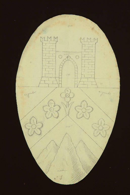 - NOTIZIE STORICO CRITICHE Secondo l'inventario manoscritto cartaceo, il disegno, insieme agli altri della stessa serie, è in relazione con gli stemmi in stucco della galleria delle armi.