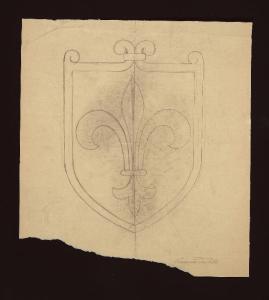 - NOTIZIE STORICO CRITICHE In base all'iscrizione manoscritta, probabilmente in relazione con la decorazione di una camera da letto.\n\nSecondo l'inventario manoscritto cartaceo, il foglio è in relazione con i "Rilievi, forme e targhe per gli stemmi da L. Comolli".