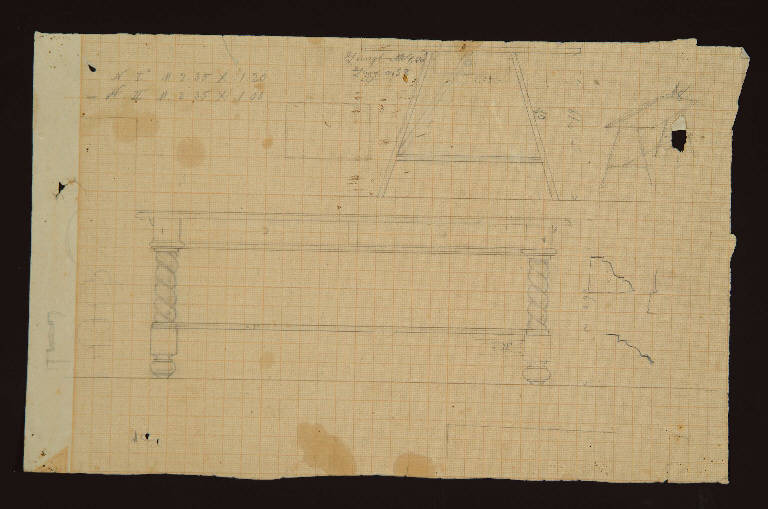 Schizzi sul verso. Indicazioni delle misure in corrispondenza delle diverse parti dello studio.