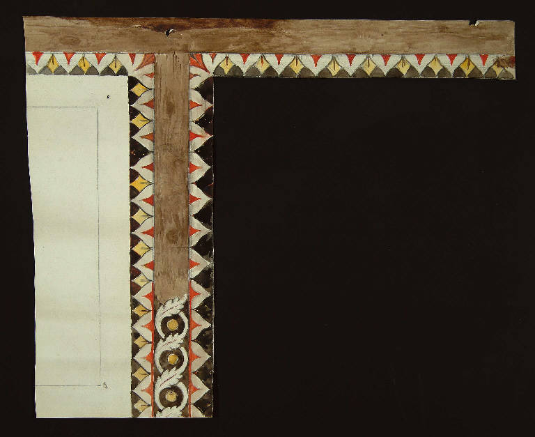 angolo di una cornice con decorazione a motivi vegetali (foglie, palmette)