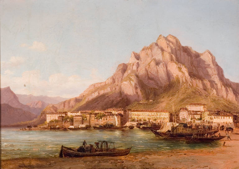 - NOTIZIE STORICO CRITICHE La Barigozzi Brini aggiorna la scheda cartacea nel Catalogo della Galleria osservando che: "Del D'Azeglio si conoscono parecchie vedute del lago di Como, ma questa è forse l'unica rappresentante Lecco, città che egli doveva conoscere bene, anche in seguito al matrimonio con una figlia del Manzoni. E' la più importante veduta che abbiamo della città, e certamente rispecchia l'aspetto di allora, con la riva animata di figurette in movimento. I toni sono caldi con riflessi dorati tipici della produzione del D'Azeglio. Tradizionalmente la tela è ritenuta del 1831, ma potrebbe anche essere di poco posteriore" (Barigozzi Brini, 1983).