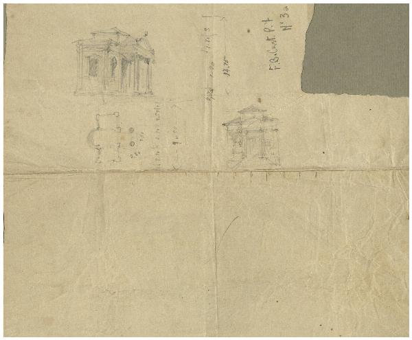 - NOTIZIE STORICO CRITICHE ll disegno reca al verso (si veda l'allegato con segnatura F. B. Cart. P. 7 n.3aBis) altri schizzi per la facciata, pianta e alzato della chiesa.