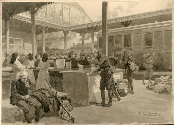 Posto di ristoro pei soldati alla Stazione Centrale