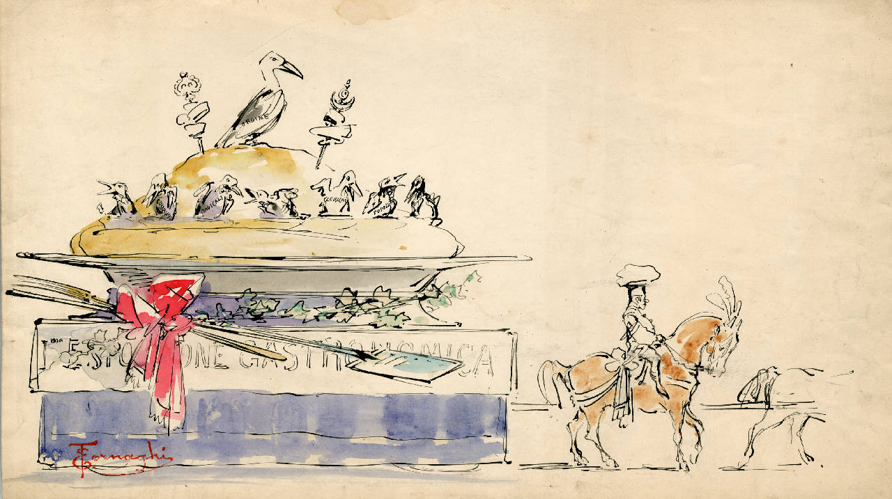 Carro carnevalesco (Esposizione gastronomica, la polenta e uccelli)