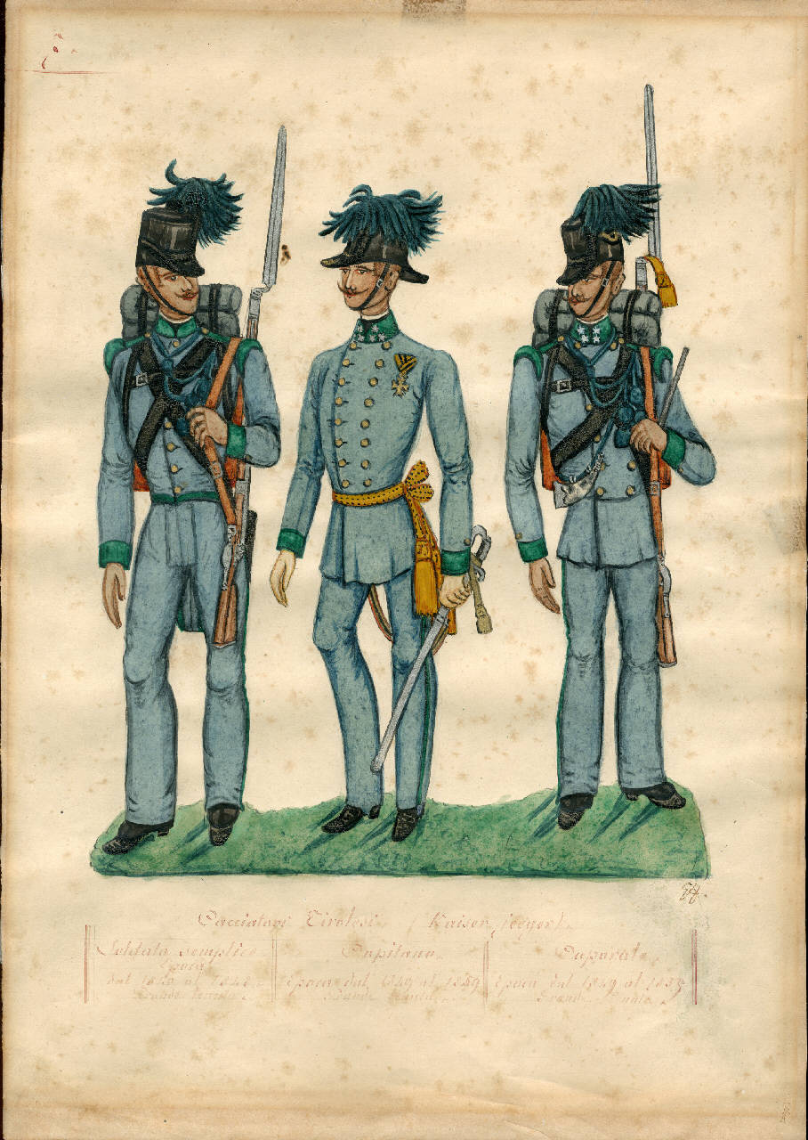 Cacciatori tirolesi (Kaiser Jeeger). Soldato semplice, Capitano, Caporale