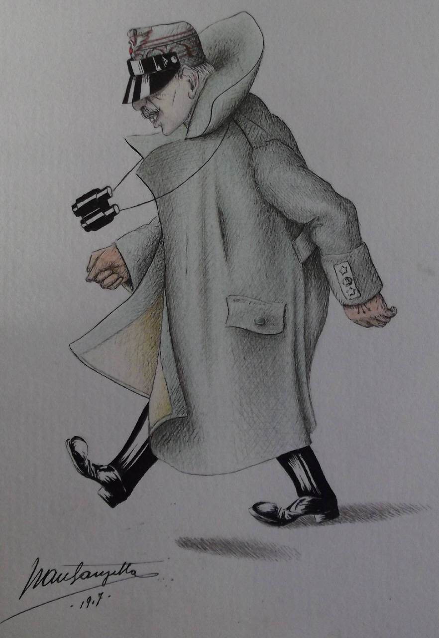 - NOTIZIE STORICO CRITICHE Tenente Generale in comando di Corpo d'Armata. veste un cappotto. Fino al 1917 comandante della 48a Divisione della II Armata, Giardino divenne dopo Caporetto Comandante dell'Armata del Monte Grappa.\nEnergico e decisionista, come lo raffigura Mausanzetta, fu benvoluto dai suoi soldati tanto da essere sepolto con loro, insieme a sua moglie, nel Sacrario di Cima Grappa.