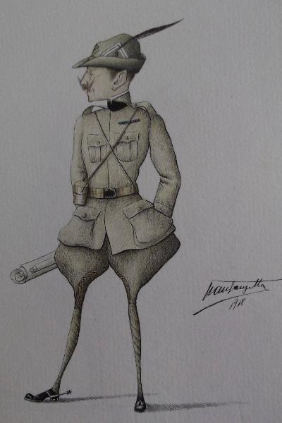 - NOTIZIE STORICO CRITICHE Non avendo nessuna indicazione che permetta di identificare il personaggio, grazie all'analisi uniformologica è stato possibile individuarlo in un Tenente di Artiglieria da Montagna; segni distintivi dell'Arma sono infatti la "pipa" nera bordata di giallo posta sul colletto della giubba e il fregio cucito sul cappello da alpino, che riporta anche i gradi da Tenente.