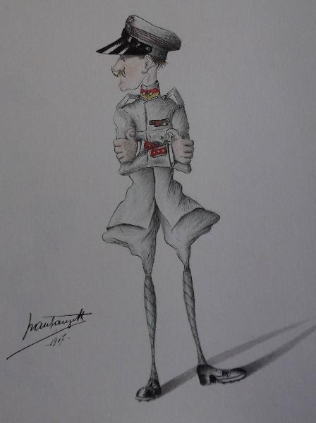 - NOTIZIE STORICO CRITICHE Eugenio De Vecchi, comandante del 140° Reggimento dal 23 giugno al 31 agosto 1917.\nDella figura di De Vecchi Mausanzetta ha realizzato anche un disegno a grafite, stilisticamente identico alla caricatura, del quale non si è ancora individuato lo scopo finale(Cart. 495, pl. IX.15).\nEugenio De Vecchi ha il grado di Colonnello, incarico che ricoprì dal 23 giugno al 31 agosto 1917. Fu Comandante del 140° Reggimento Fanteria della Brigata Bari. \nDella figura di De Vecchi Mausanzetta ha realizzato anche un disegno a grafite, stilisticamente identico alla caricatura, del quale non si è ancora individuato lo scopo finale.
