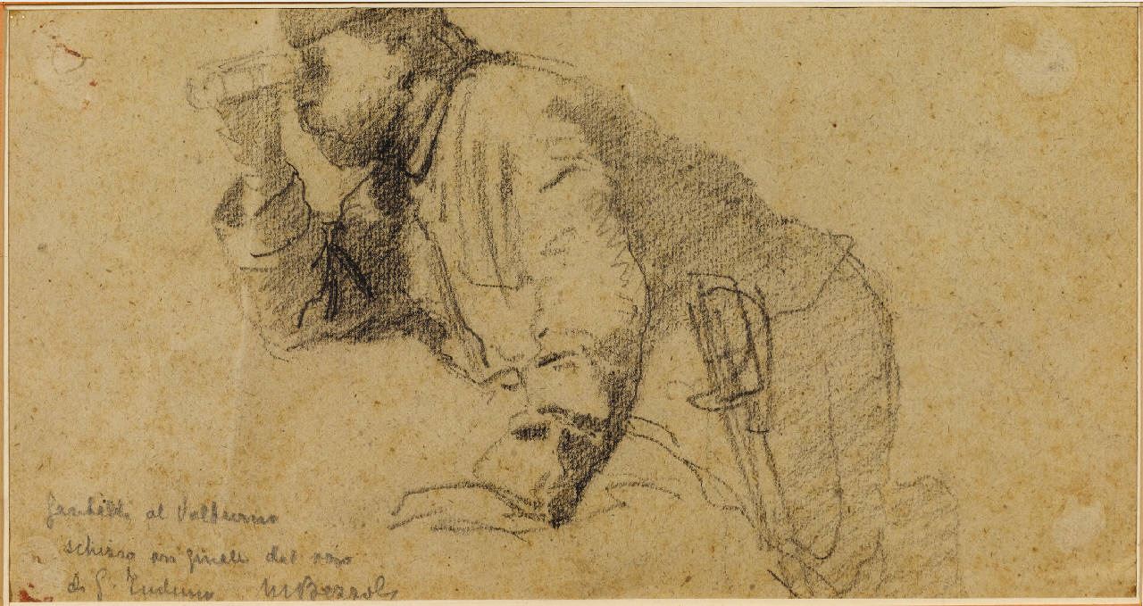 - NOTIZIE STORICO CRITICHE Il foglio presenta al verso un disegno a matita grassa dello stesso autore rappresentante una figura di cavaliere.