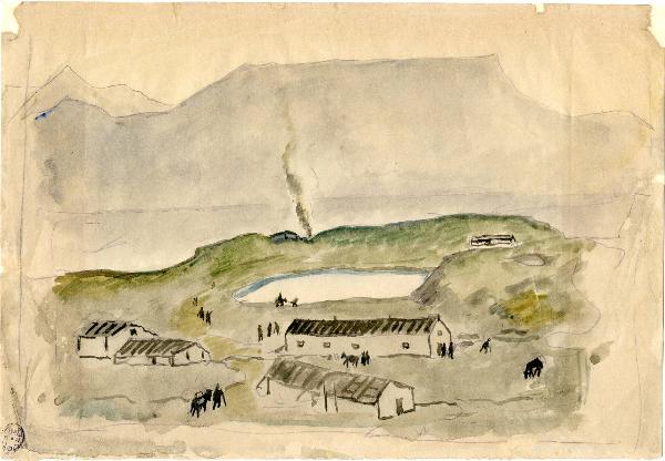 Caserme sullo sfondo di un lago