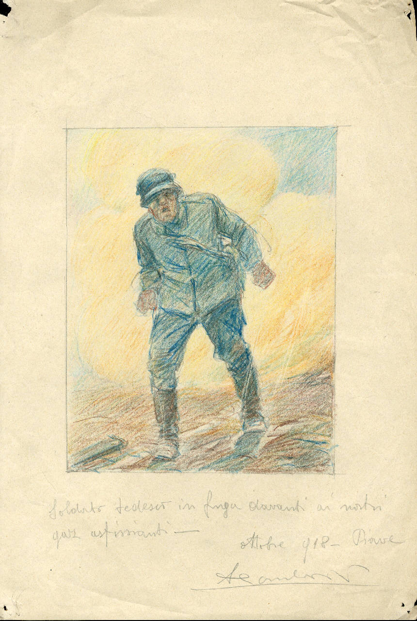 Soldato tedesco in fuga davanti ai nostri gas asfissianti.