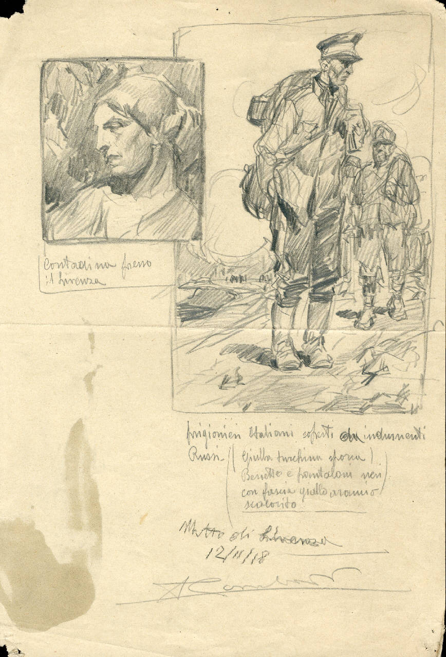 - NOTIZIE STORICO CRITICHE Il foglio era precedentemente conservato presso l'Archivio di Storia Contemporanea, già Archivio della Guerra della raccolte storiche Cart. 22 ed è ora collocato, con segnatura Prez. XXs. p. 52, nella collezione disegni.