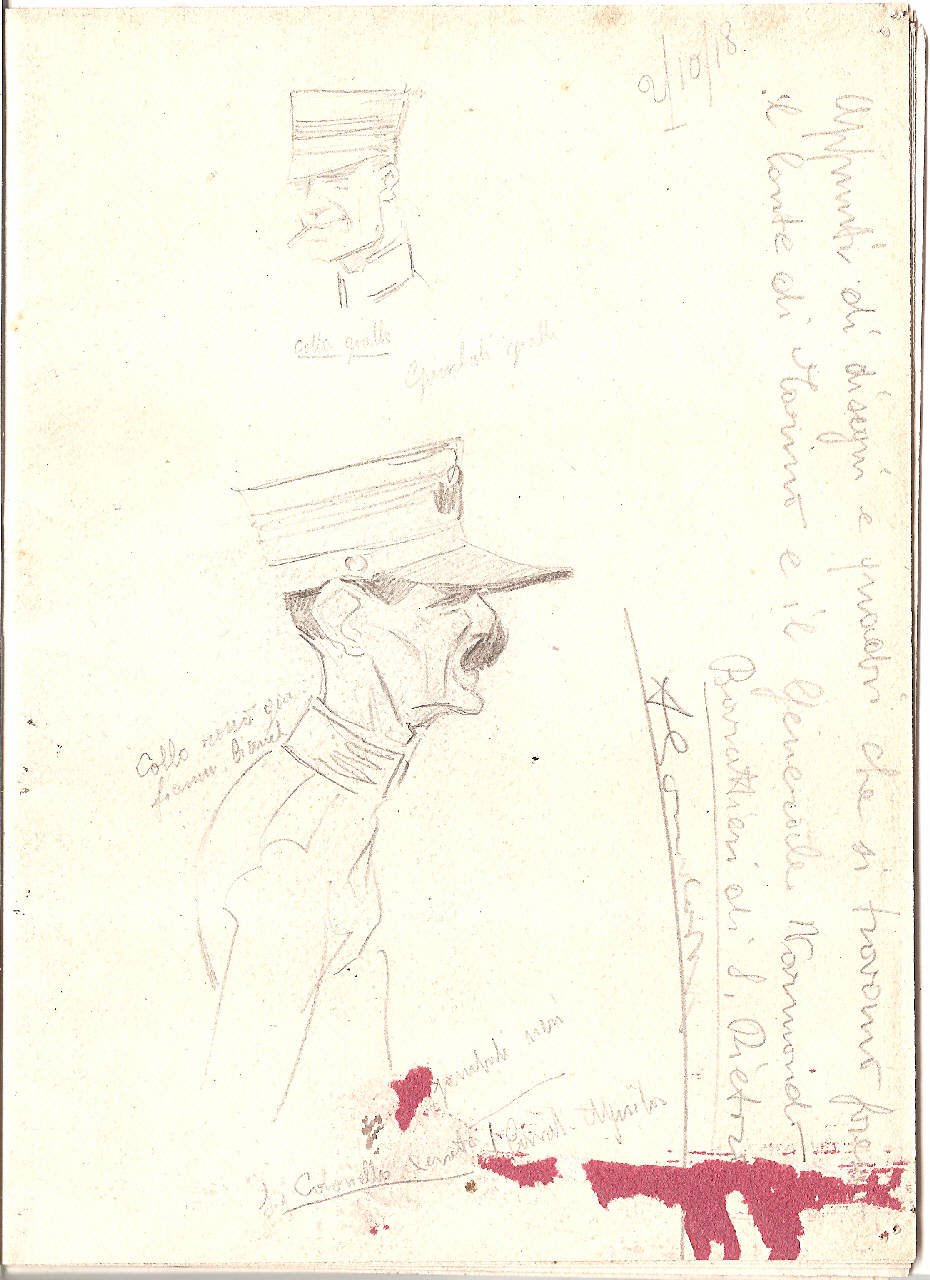 - NOTIZIE STORICO CRITICHE Il titolo è stato attribuito dal catalogatore; il foglio, entro la parte figurata, presenta altre iscrizioni a matita.\nIl foglio fa parte di un libretto-diario datato 1918 di Ambrogio Lombardi, avente come titolo "Appunti di disegni e quadri che si trovano presso il Conte di Torino e il Generale Warmondo. Barattieri di San Pietro", composto da dieci pagine, contenente schizzi a matita. L'album era precedentemente conservato presso l'Archivio di Storia Contemporanea già Archivio della Guerra delle Raccolte Storiche, Cart. 22 ed ora è collocato con segnatura Prez. XXs. p. 55 nella Collezione Disegni.