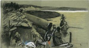 - NOTIZIE STORICO CRITICHE Il foglio è il possibile disegno preparatorio per quadro indicato come disperso intitolato " Batteria di marina Punta Sdobba"