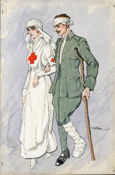 - NOTIZIE STORICO CRITICHE Il titolo è stato attribuito dal catalogatore.\nProbabile disegno preparatorio per cartolina, si notino infatti i segni a matita all'interno della parte figurata, come ad indicare il taglio con la parte interessata per la resa finale.\nAl verso è presente il cartiglio in basso a destra con numero 38, e sulla parte sinistra, frammento di altro cartiglio.