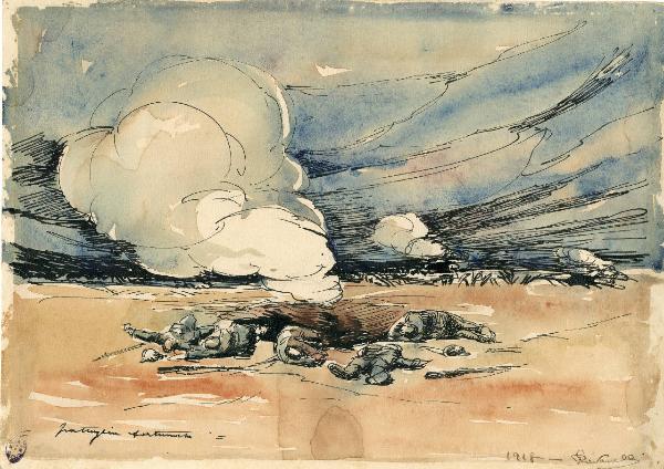 - NOTIZIE STORICO CRITICHE Il disegno riporta al verso la raffigurazione due medaglie ad acquarello: la prima in alto decorata recante al centro la scritta "Savoia" circondata dai nomi di alcune località (Piave, Livenza, Tagliamento, Paradiso, Postumia); la seconda rappresenta lo stemma del XXVIII CORPO D'ARMATA MCMXVII MCMXVIII, si veda l'allegato con segnatura Prez. XX s. g. 49b