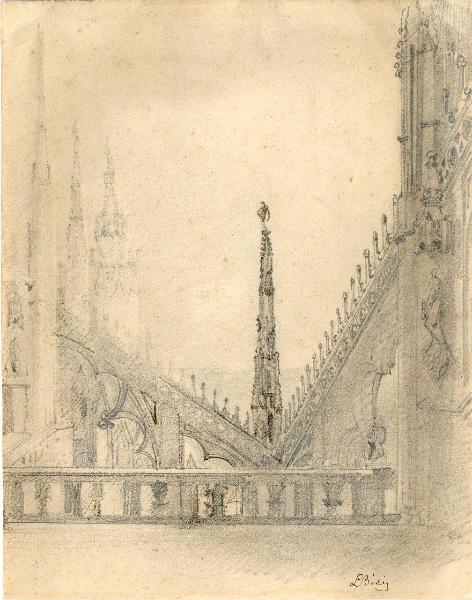 Sopra il Duomo: archi rampanti che si incontrano in uno degli angoli formati dai bracci di croce. Sopra il Duomo: archi rampanti che si incontrano in uno degli angoli formati dai bracci di croce