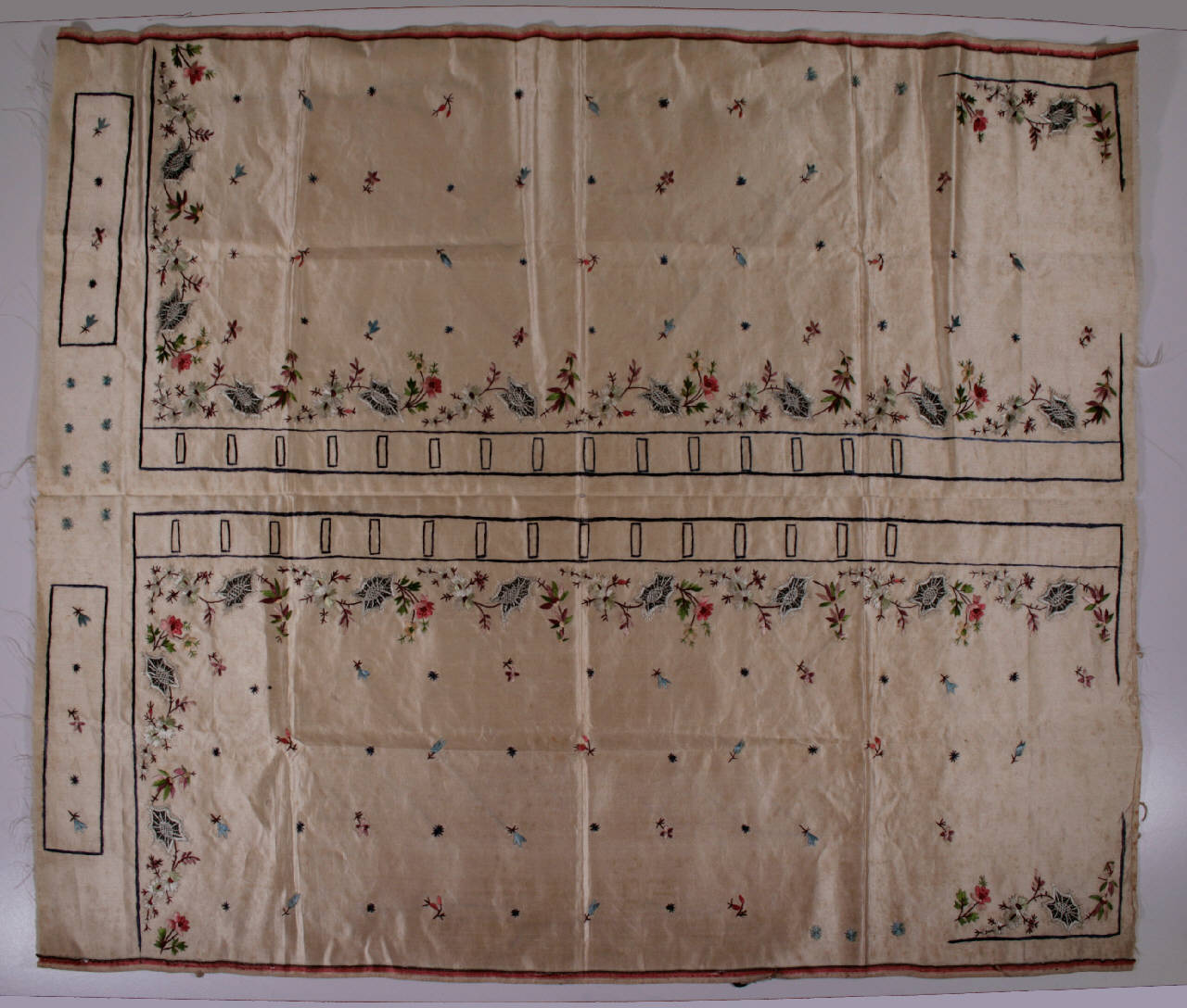 seta/ raso/ ricamo a punto erba/ ricamo a punto lanciato/ ricamo a punto raso/ ricamo in seta/ ricamo a punto nodi