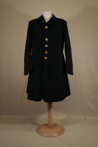 Livrea confezionata in panno nero, collo con reversi, mostre dritte dove sono sei bottoni in metallo fuso con stemma gentilizio (di cui uno staccato) e altrettanti occhielli, falde che si riuniscono posteriormente in piegoni fermati e spacco centrale, punto vita segnato da due bottoni. Maniche in due pezzi dritta. Fodera in diagonale nero e per le maniche in diagonale azzurro; sul petto è una tasca a filetto. Etichetta cucita sul dorso. Intorno al collo è applicato un nastro in raso a righe verdi e gialle.