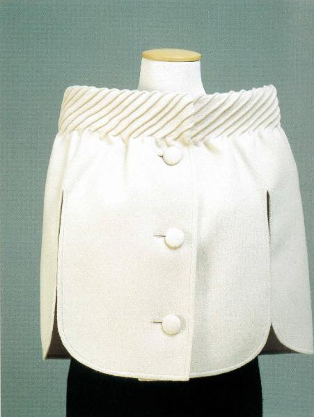 - NOTIZIE STORICO CRITICHE Il giacchino (primavera 1962 haute couture) presenta forti analogie con un modello pubblicato su "Linea" della primavera 1962 ("Pierre Cardin non ha abbandonato le lavorazioni a nervature, che qui ha eseguito attorno allo scollo della robe-manteau fornita di cappa a conchiglia").