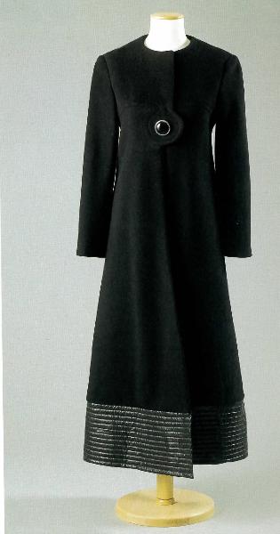 - NOTIZIE STORICO CRITICHE L'abito della collezione prêt-à-porter autunno-inverno 1969-70, fu acquistato da Silvana Bernasconi a Parigi da Cardin.\nIn "Harper's Bazaar Italia", ottobre 1969 definito come "una scultura il 'mixi', così è chiamato l'insieme di maxicappotto su minigonna; lungo il mantello di lana bianca profilato di ciré nero; il pullover sale a cappuccio fasciando il viso. Tessuto Fournier".
