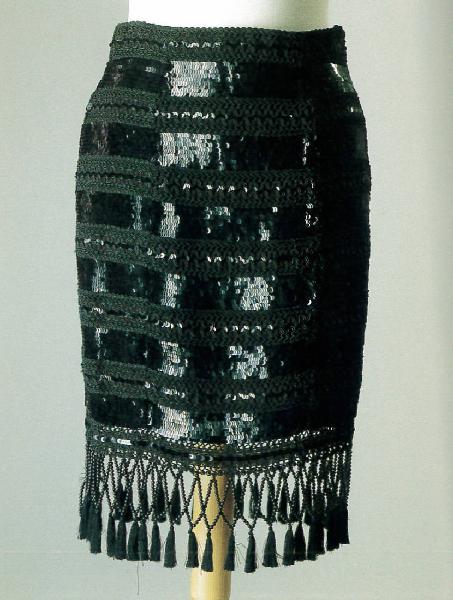 - NOTIZIE STORICO CRITICHE Capo della collezione prêt-à-porter acquistato per una festa di Natale. Silvana Bernasconi indossava la gonna con una maglietta nera ricamata con applicazioni di paillettes di Sonia Rykiel.