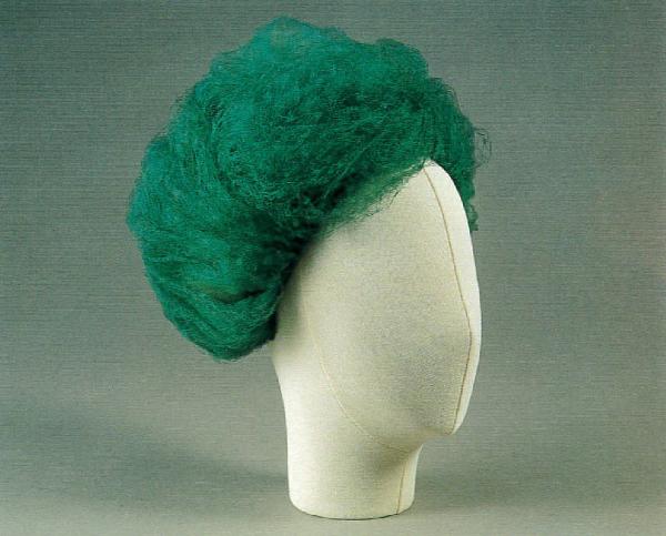 calotta di rete su cui è applicato il point d'esprit a fasce avvolgenti drappeggiate.
