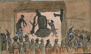 - NOTIZIE STORICO CRITICHE Serie di disegni conservati all'interno di un taccuino posseduto dall'artista Camillo Ghisi.\nScena raffigurante uno spettacolo.