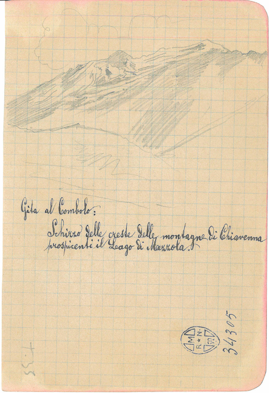 Gita al Combolo: Schizzo delle creste delle montagne di Chiavenna prospicenti il Lago di Mezzola.. paesaggio