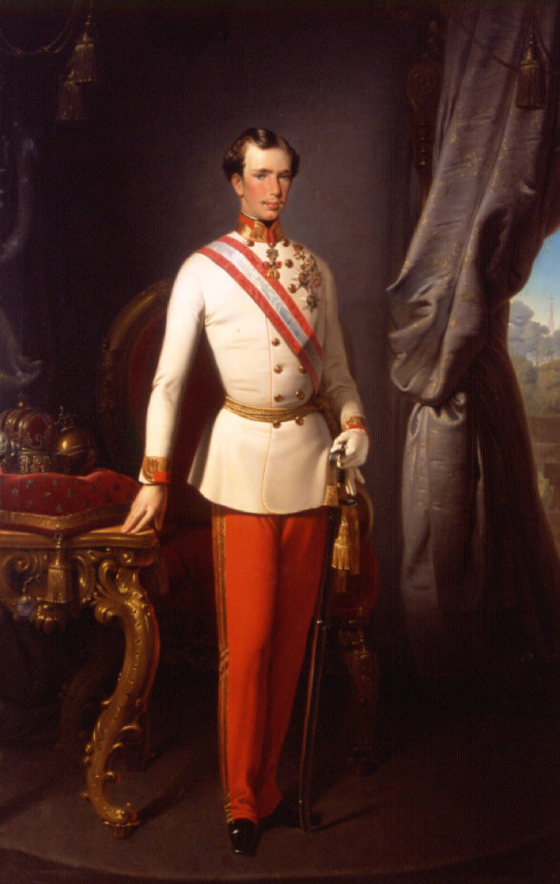 - NOTIZIE STORICO CRITICHE Francesco Giuseppe I, imperatore d'Austria e re d'Ungheria, qui rappresentato con gli abiti ufficiali e accanto ai simboli imperiali, represse nel biennio 1848-49 i moti liberali e nazionali delle province dell'Impero.