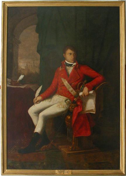 - NOTIZIE STORICO CRITICHE Napoleone Bonaparte come Primo console con sfndo paesistico e castello di Chambord.