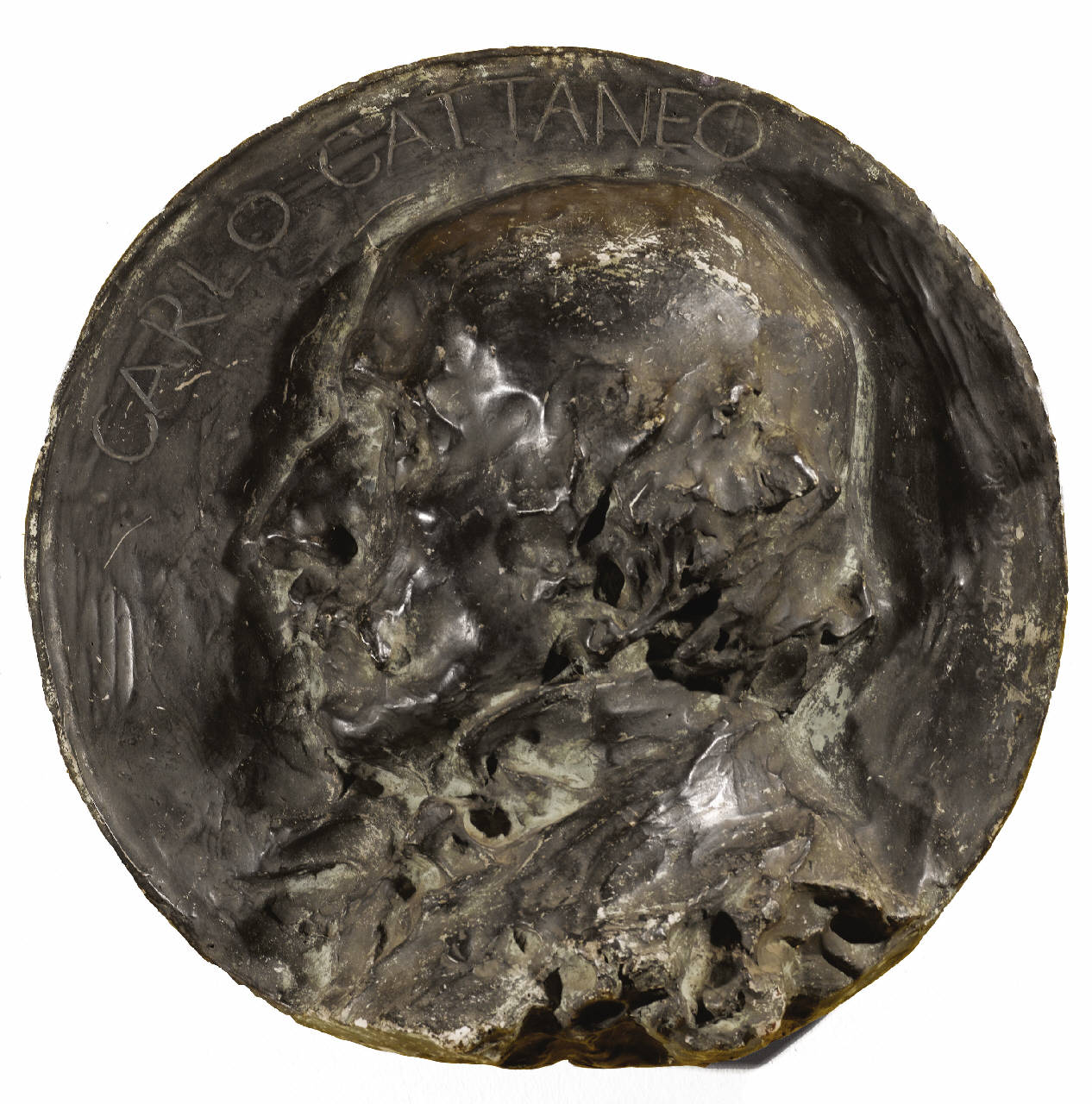 - NOTIZIE STORICO CRITICHE L'opera in questione è una variante del tondo in gesso ( n. inv. GAM 6753) della Galleria d'arte moderna di Milano, ma qui la scritta è meno regolare e la modellazione della testa del Cattaneo appare meno definita. Entrambe le opere sono firmate.