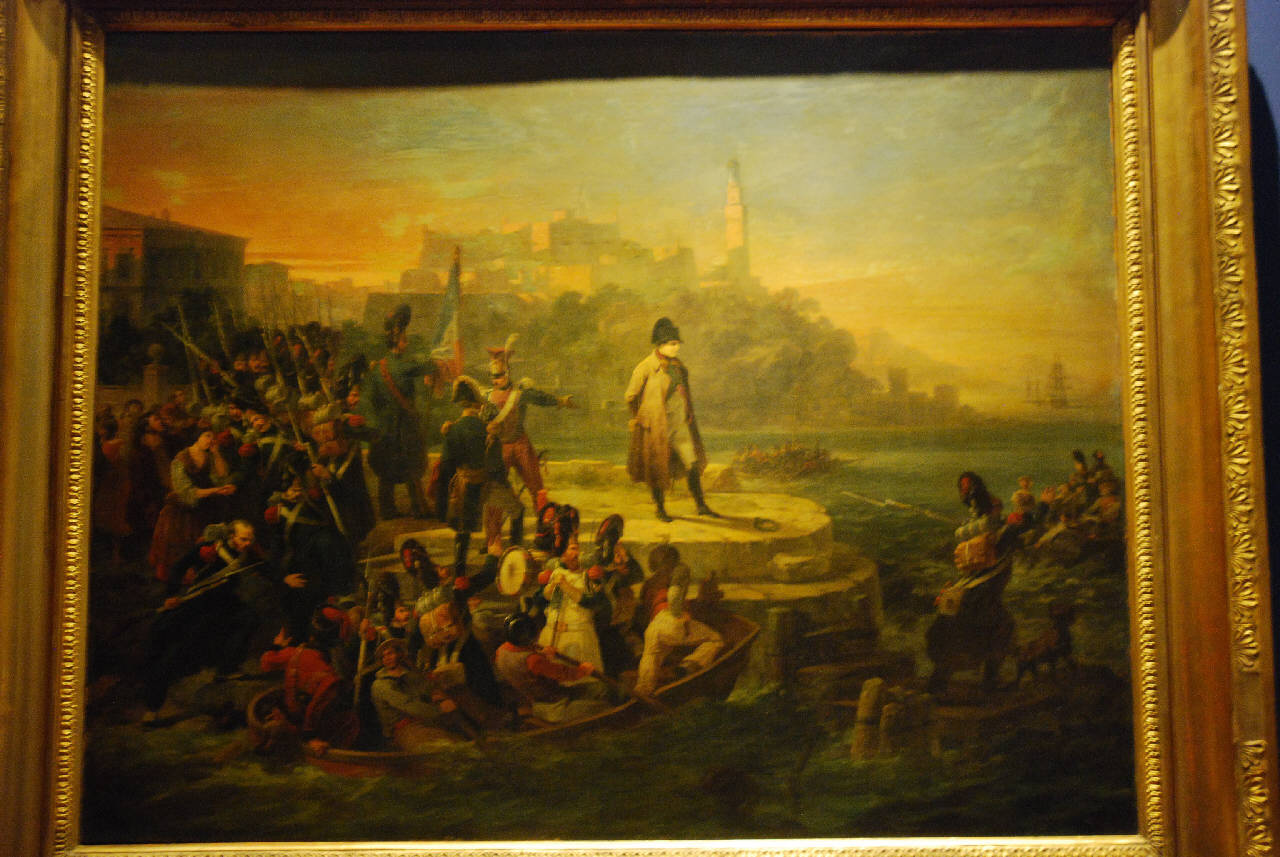 - NOTIZIE STORICO CRITICHE Questo dipinto testimonia la ripresa dell'iconografia napoleonica negli anni della monarchia di Luigi Filippo d'Orleans ed è da mettere in relazione con i dipinti dello stesso artista intitolati "Napoleone che ritorna dall'isola d'Elba e sbarca a Cannes" dal 1841 e "Napoleone a Boulogne sur mer il 14 luglio 1805" del 1844.