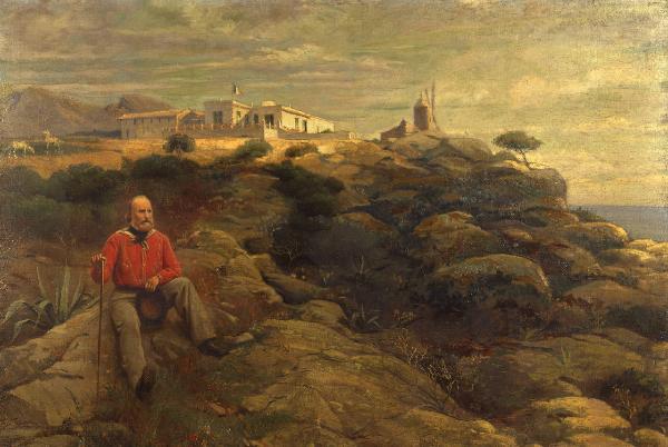 Giuseppe Garibaldi a Caprera. Vista di Caprera con Giuseppe Garibaldi