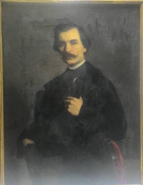Dipinto su tela con ritratto maschile a mezzo busto, di tre quarti