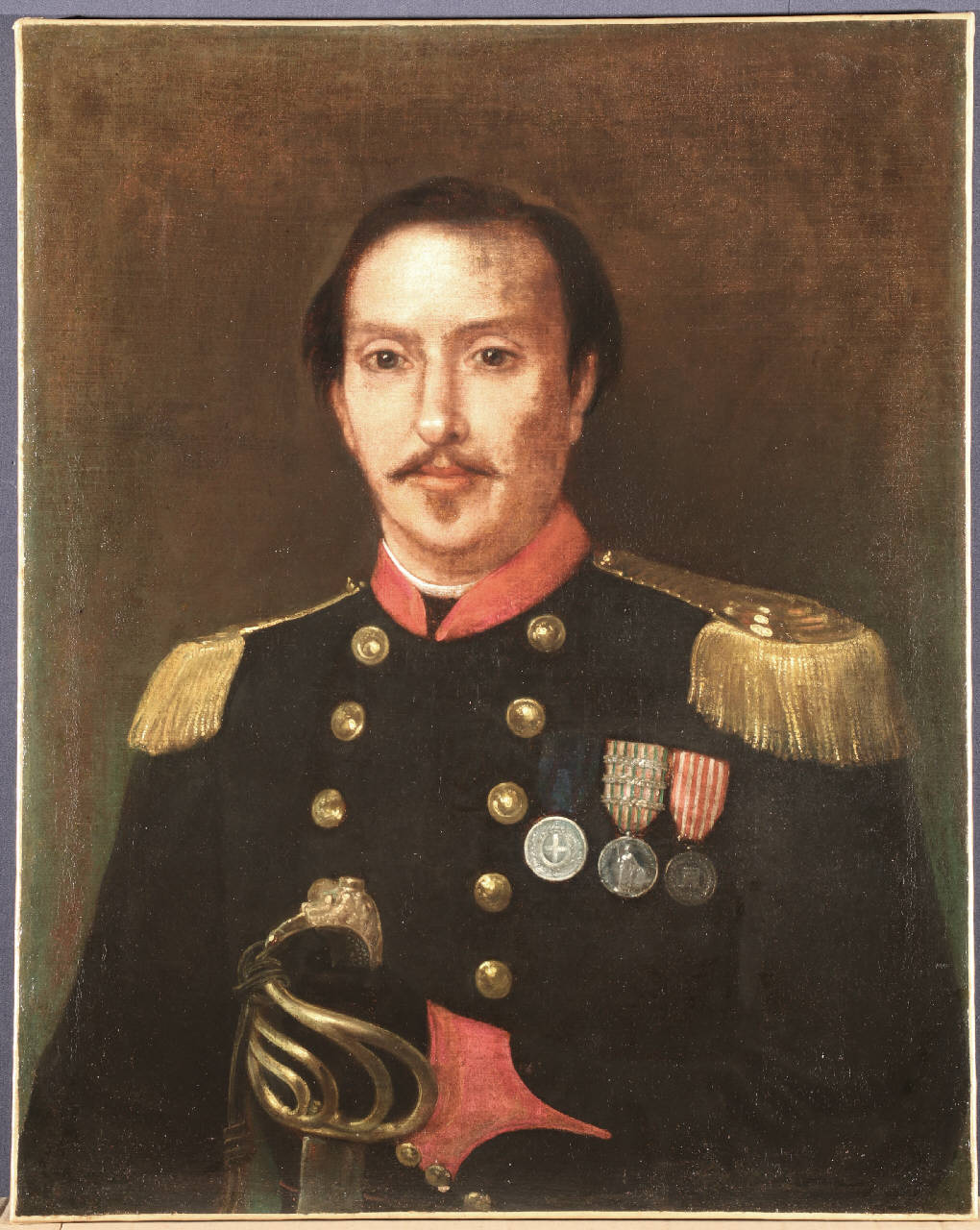 Dipinto su tela con ritratto di uomo a mezzo busto
