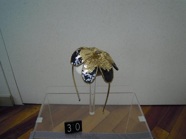 Cerchietto con fiore di paillettes nero e oro.