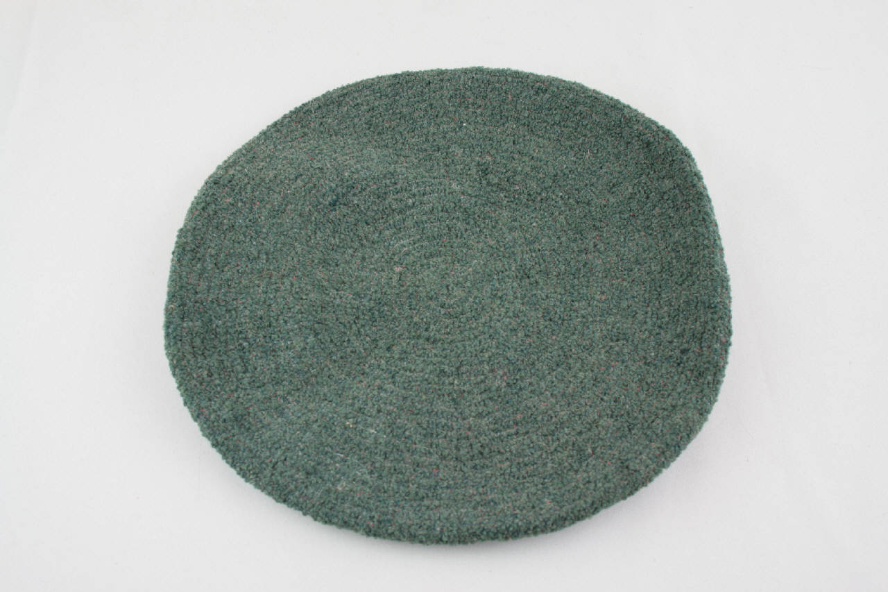 Basco in maglia di lana bouclè verde salvia, infeltrita. Doppiato in tela avorio e trapuntato a cuciture concentriche. All'interno etichetta in nastro operato.