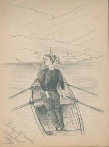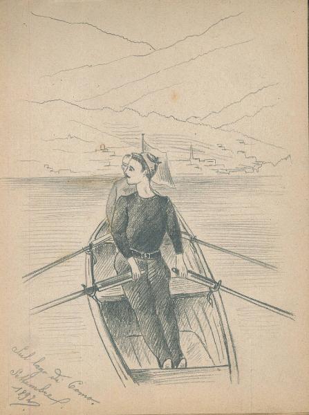 - NOTIZIE STORICO CRITICHE Serie di disegni conservati all'interno di un taccuino da viaggio datato 1892 e posseduto dall'artista Camillo Ghisi.\nScena raffigurante due uomini su una piccola imbarcazione sulle acque del lago di Como nel Settembre 1892.