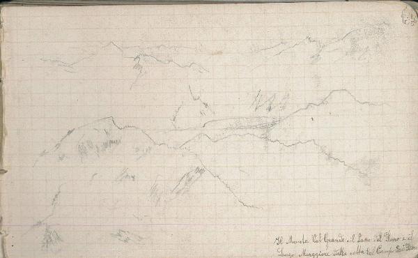 - NOTIZIE STORICO CRITICHE Serie di disegni conservati all'interno di un taccuino da viaggio posseduto dall'artista Camillo Ghisi.\nIl Monte Val Grande, il Sasso del Ferro ed il Lago Maggiore dalla vetta del Campo dei Fiori.