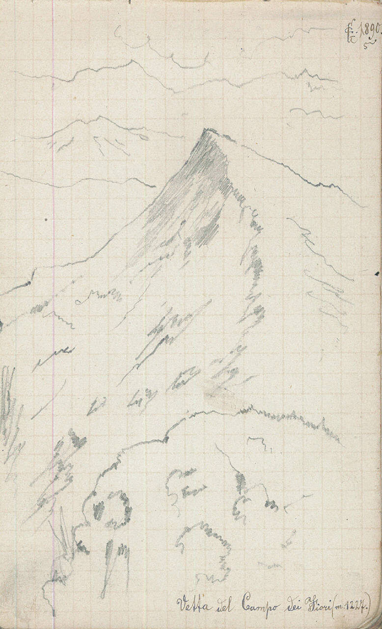 - NOTIZIE STORICO CRITICHE Serie di disegni conservati all'interno di un taccuino da viaggio posseduto dall'artista Camillo Ghisi.\nSchizzo a matita della Vetta del Campo dei Fiori (m.1227.)