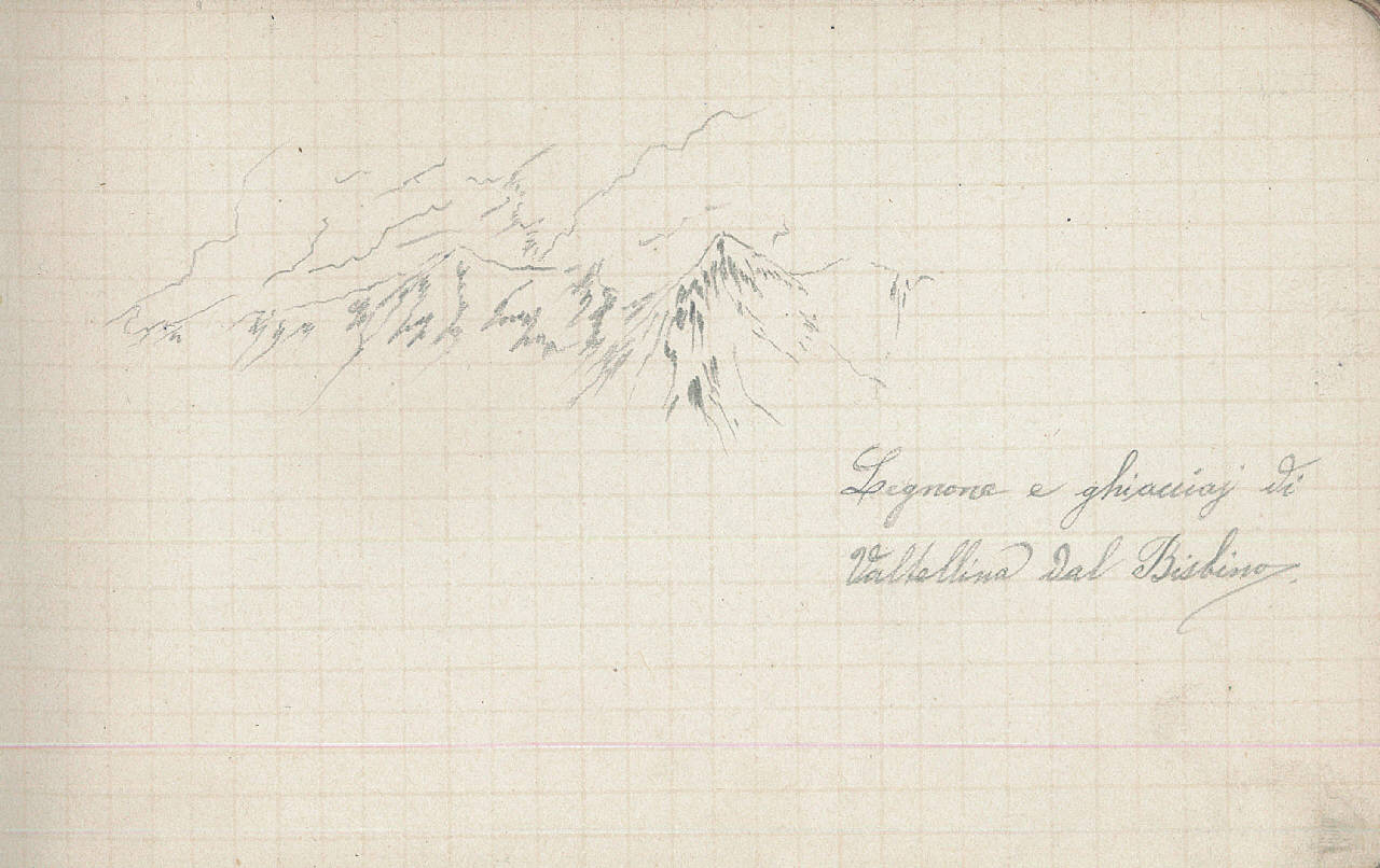 - NOTIZIE STORICO CRITICHE Serie di disegni conservati all'interno di un taccuino da viaggio posseduto dall'artista Camillo Ghisi.\nSchizzo a matita del Legnone e ghiacciai di valtellina dal Bisbino