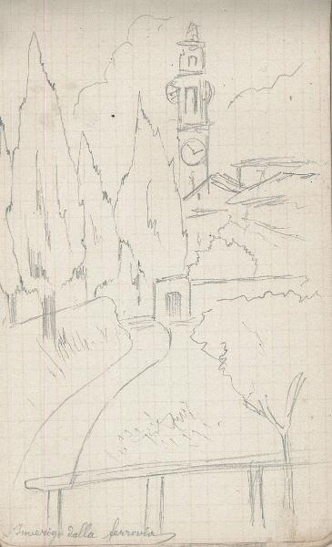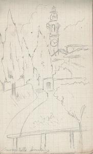 - NOTIZIE STORICO CRITICHE Serie di disegni conservati all'interno di un taccuino da viaggio posseduto dall'artista Camillo Ghisi.\nSchizzo a matita di Inverigo (Co) visto dalla ferrovia.